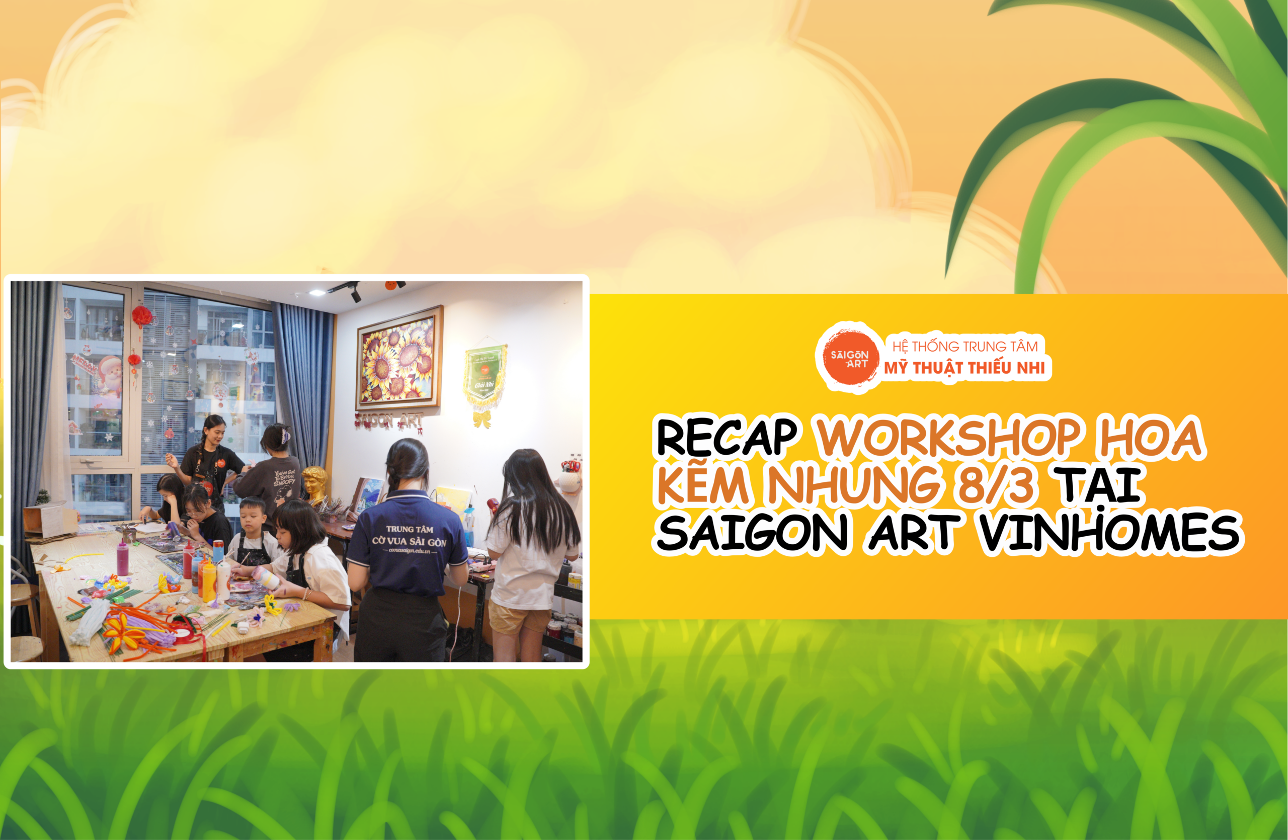 Nhân dịp Ngày Quốc tế Phụ nữ 8/3, SaiGon Art Vinhomes đã tổ chức workshop làm hoa kẽm nhung handmade dành cho các bạn nhỏ. Đây là một hoạt động nghệ thuật ý nghĩa, nơi các “họa sĩ nhí” có …
