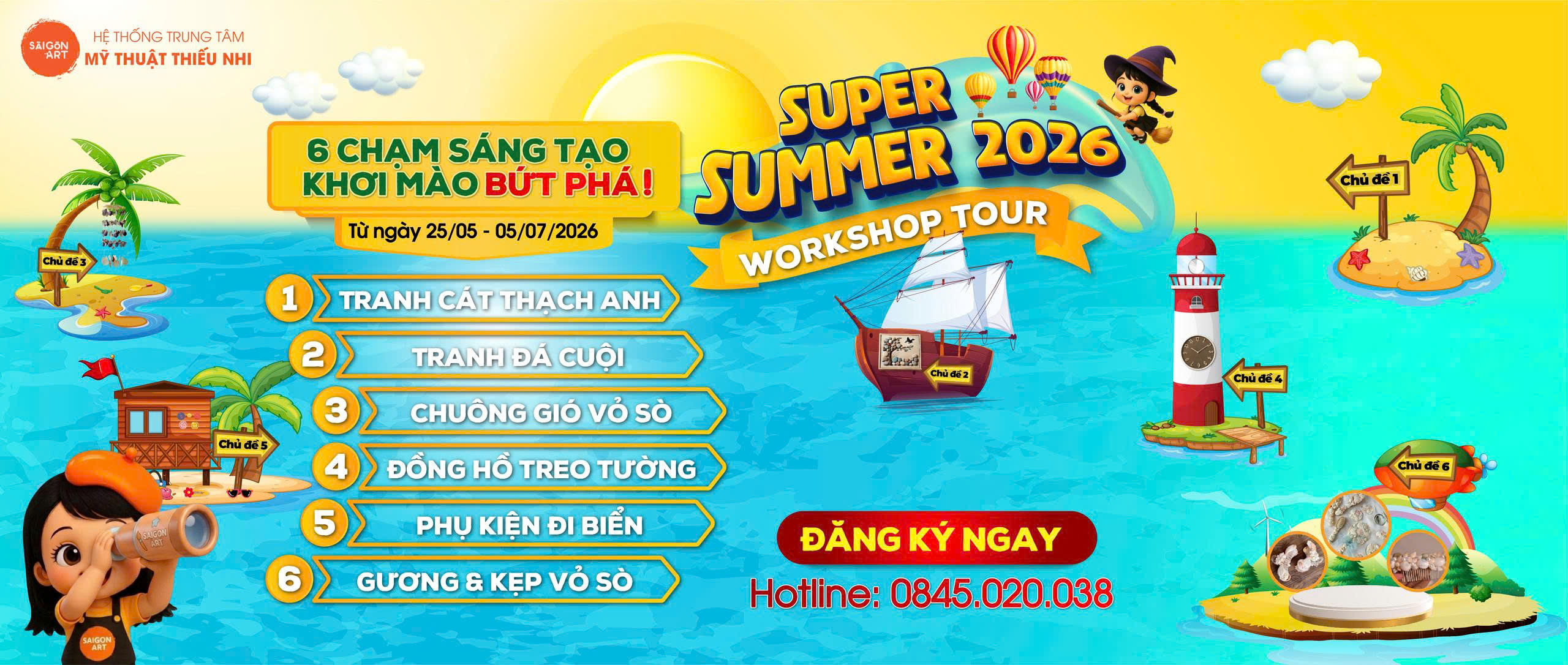 🎨 Saigon Art là trung tâm mỹ thuật dành cho trẻ từ 4 đến 16 tuổi, nơi các bé được thỏa sức sáng tạo và phát triển tư duy nghệ thuật một cách tự nhiên. ✨ Tại đây, bé sẽ được học vẽ đa dạng thể loại như chân dung, phong cảnh, manga, chibi, anime… 🖌️ cùng nhiều hoạt động thú vị như làm thủ công, nặn đất sét, vẽ tranh cát, tranh quạt. 🎭 Không chỉ rèn luyện kỹ năng hội họa, Saigon Art còn giúp bé phát triển khả năng quan sát, tư duy sáng tạo, kỹ năng giao tiếp và làm việc nhóm. 🧠 Với môi trường học tập thân thiện, lịch học linh hoạt và các buổi triển lãm trưng bày tác phẩm, Saigon Art mang đến cho bé một hành trình nghệ thuật đầy cảm hứng và ý nghĩa. 🖼️
