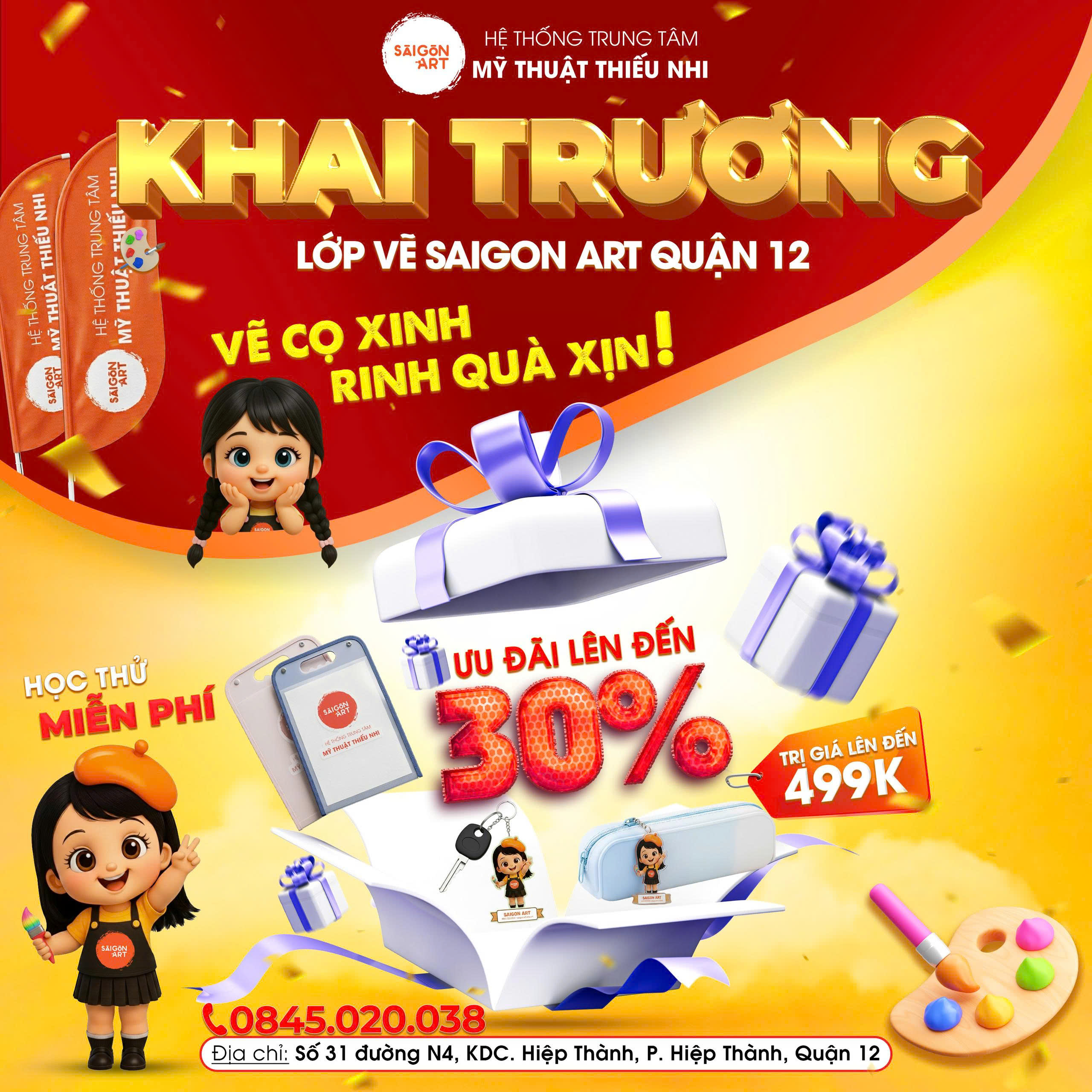 🎨 Khai trương SaiGon Art Quận 12 – Ưu đãi lớp vẽ thiếu nhi cực hấp dẫn