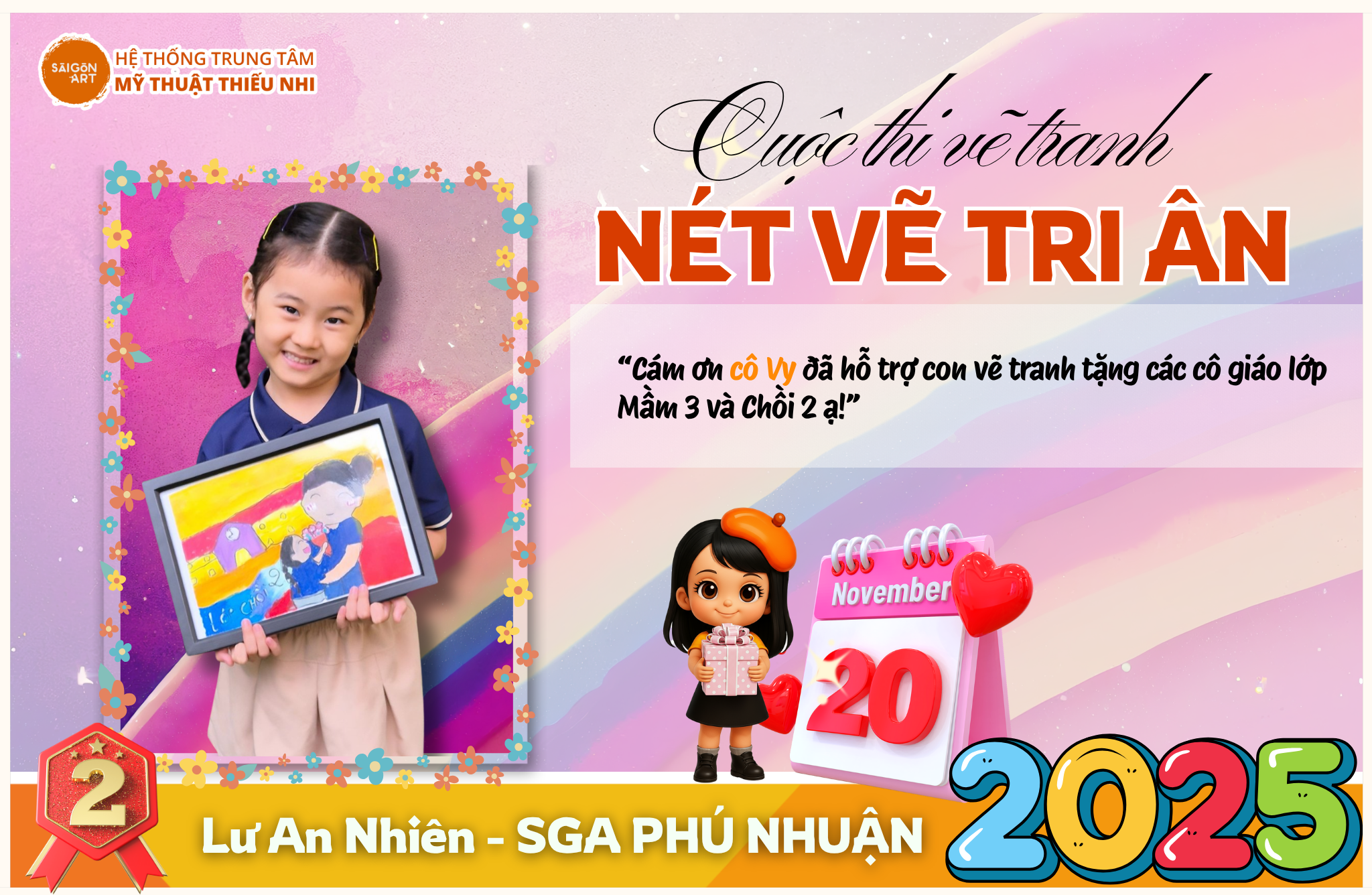 Sau một thời gian phát động sôi nổi và quá trình chấm giải công tâm, Ban Tổ Chức hệ thống SaiGon Art (SGA) xin trân trọng công bố kết quả chung cuộc của cuộc thi nghệ thuật đầy ý nghĩa: “Nét Vẽ Tri Ân – 2025”.