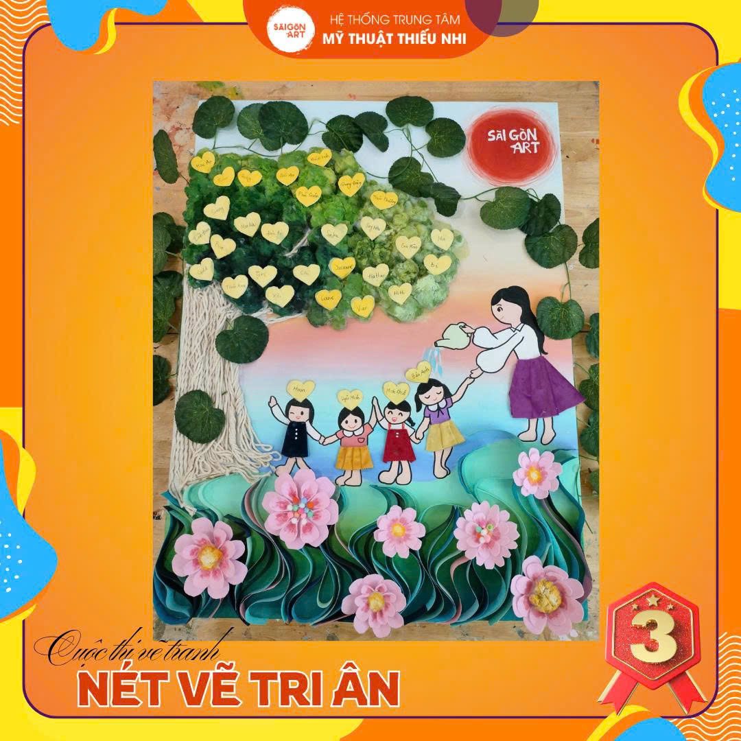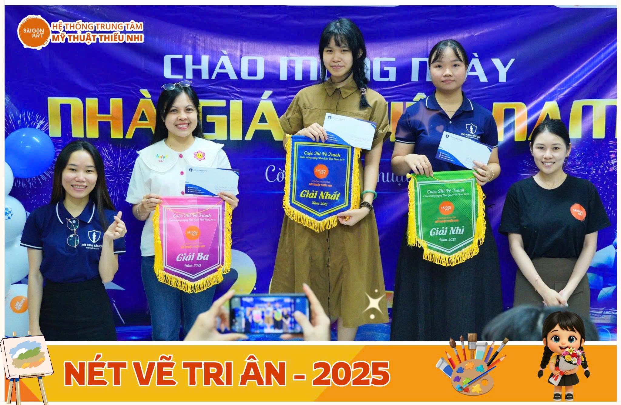 Điểm nhấn không thể bỏ qua của sự kiện 20/11 là lễ công bố kết quả cuộc thi nội bộ “Nét Vẽ Tri Ân – 2025”. Đây là minh chứng rõ ràng nhất cho thấy: Giáo viên Saigon Art không chỉ dạy giỏi và chơi vui, mà còn sở hữu tài hoa và sự sáng tạo nghệ thuật vượt trội.