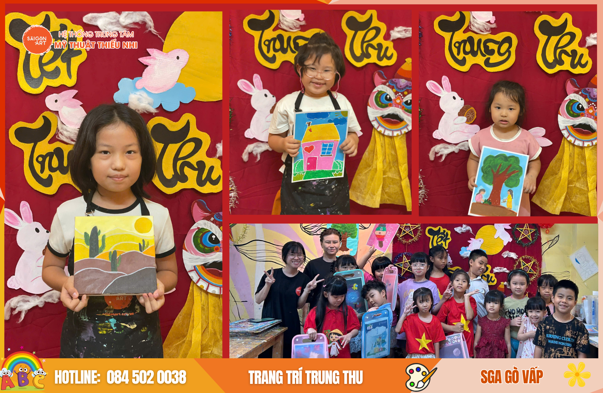 Đặc biệt, SaiGon Art còn thường xuyên tổ chức những buổi triển lãm nhỏ, nơi trưng bày các tác phẩm do chính các bé sáng tạo. Mỗi bức tranh, mỗi chiếc lồng đèn không chỉ là sản phẩm của sự khéo léo mà còn là thông điệp yêu thương mà các bé muốn gửi đến gia đình và bạn bè trong mùa Trung Thu đoàn viên.